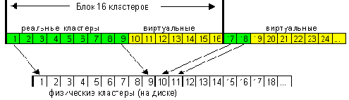 Видно, что сжатый файл имеет "виртуальные"кластеры, реальной информации в которых нет.Как только система видит такие виртуальныекластеры, она тут же понимает, что данныепредыдущего блока, кратного 16-ти, должныбыть разжаты, а получившиеся данные как раззаполнят виртуальные кластеры - вот, по сути,и весь алгоритм.
